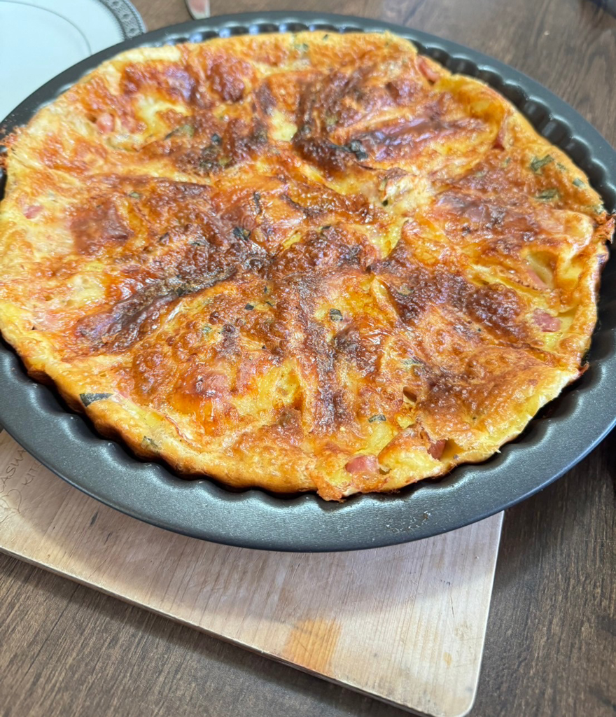 - Verser délicatement le mélange au-dessus du fromage et des lardons